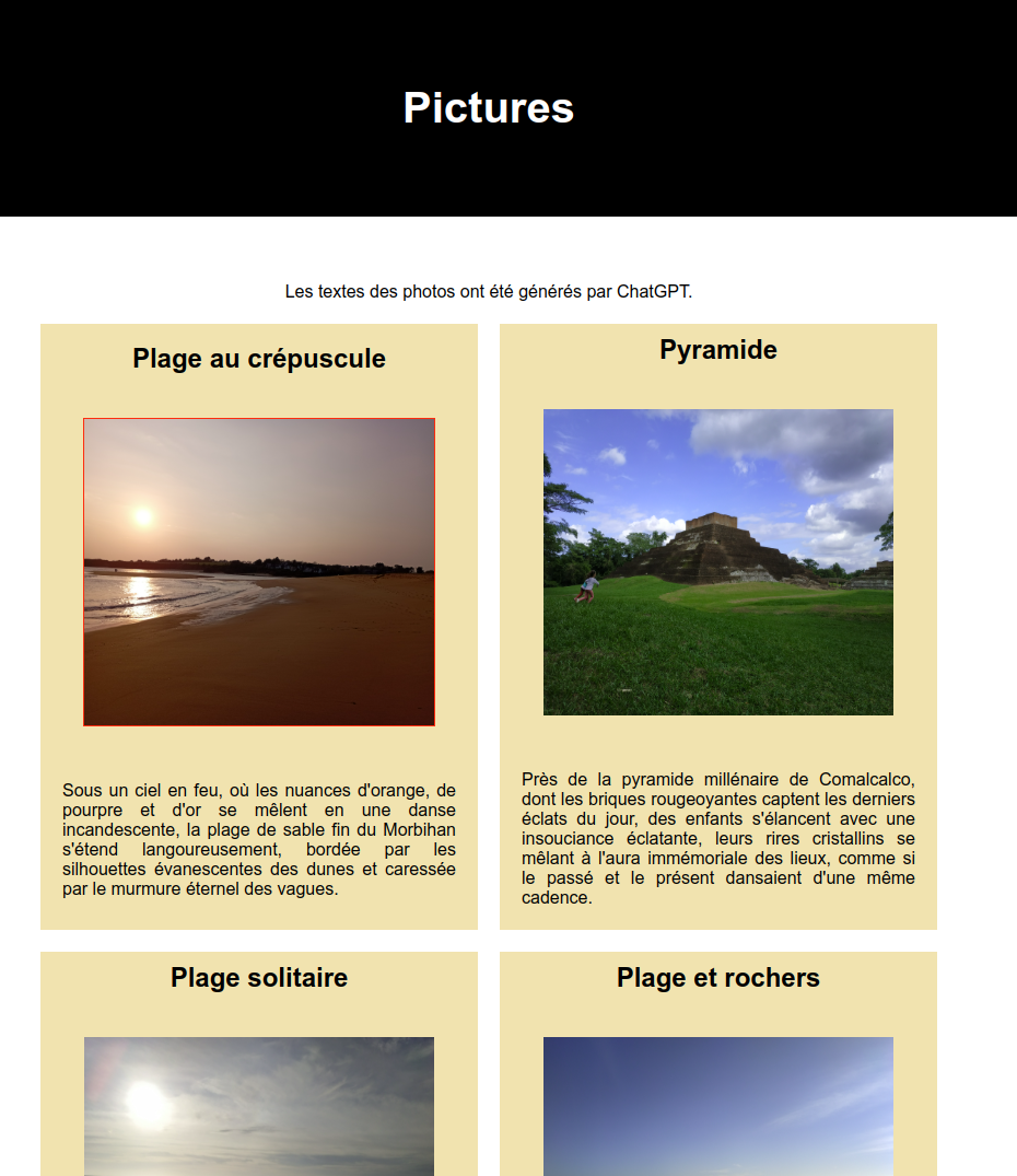 • d'un titre h2 qui décrit la photo succintement