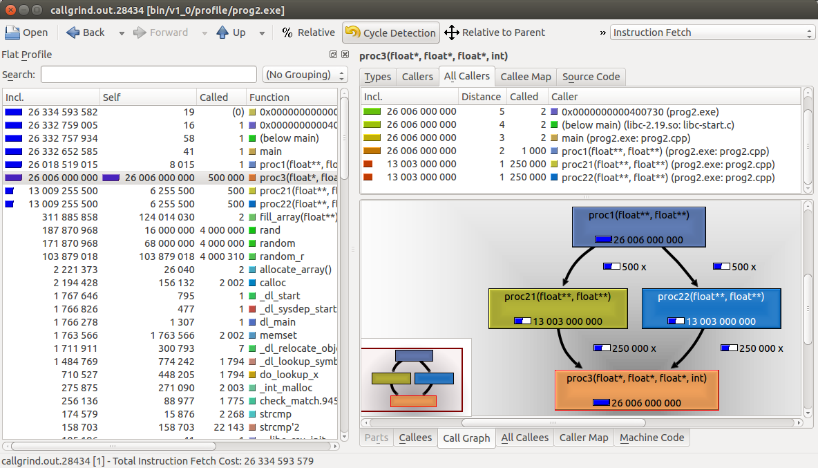 Pour obtenir le visuel du call-graph (il faut avoir installé graphviz -- graph visualization software -- sous Ubuntu : sudo apt-get install graphviz), il suffit de cliquer en bas à droite sur l'onglet "Call-graph".