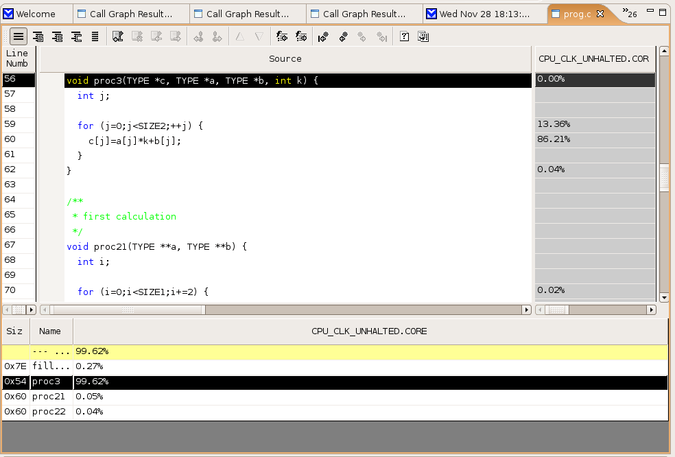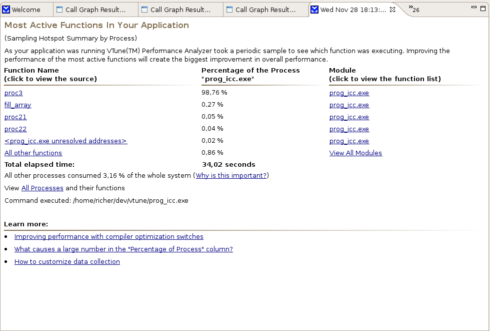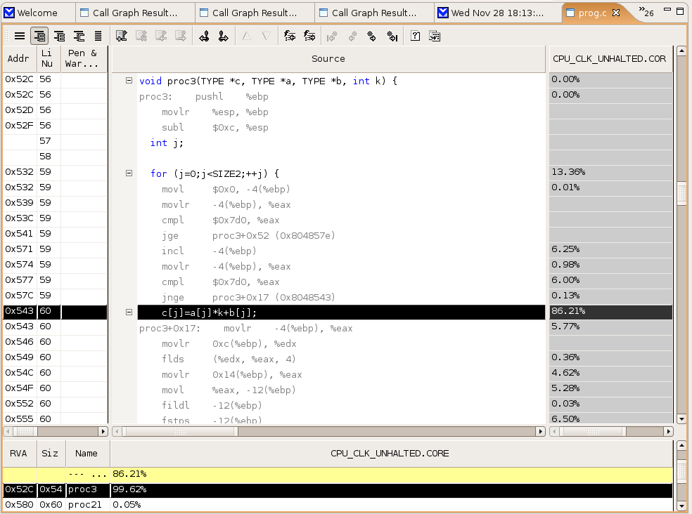 VTune est un outil complet de profiling et de tuning qui permet de déterminer les hot spots et d'éclairer sur leur comportement : instruction peu performante, accès mémoire non aligné, nombre important de défauts de cache dus à des données de trop grande taille.