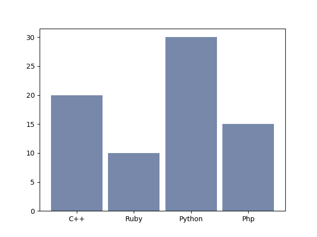 x_labels = [ 'C++', 'Ruby', 'Python', 'Php' ]